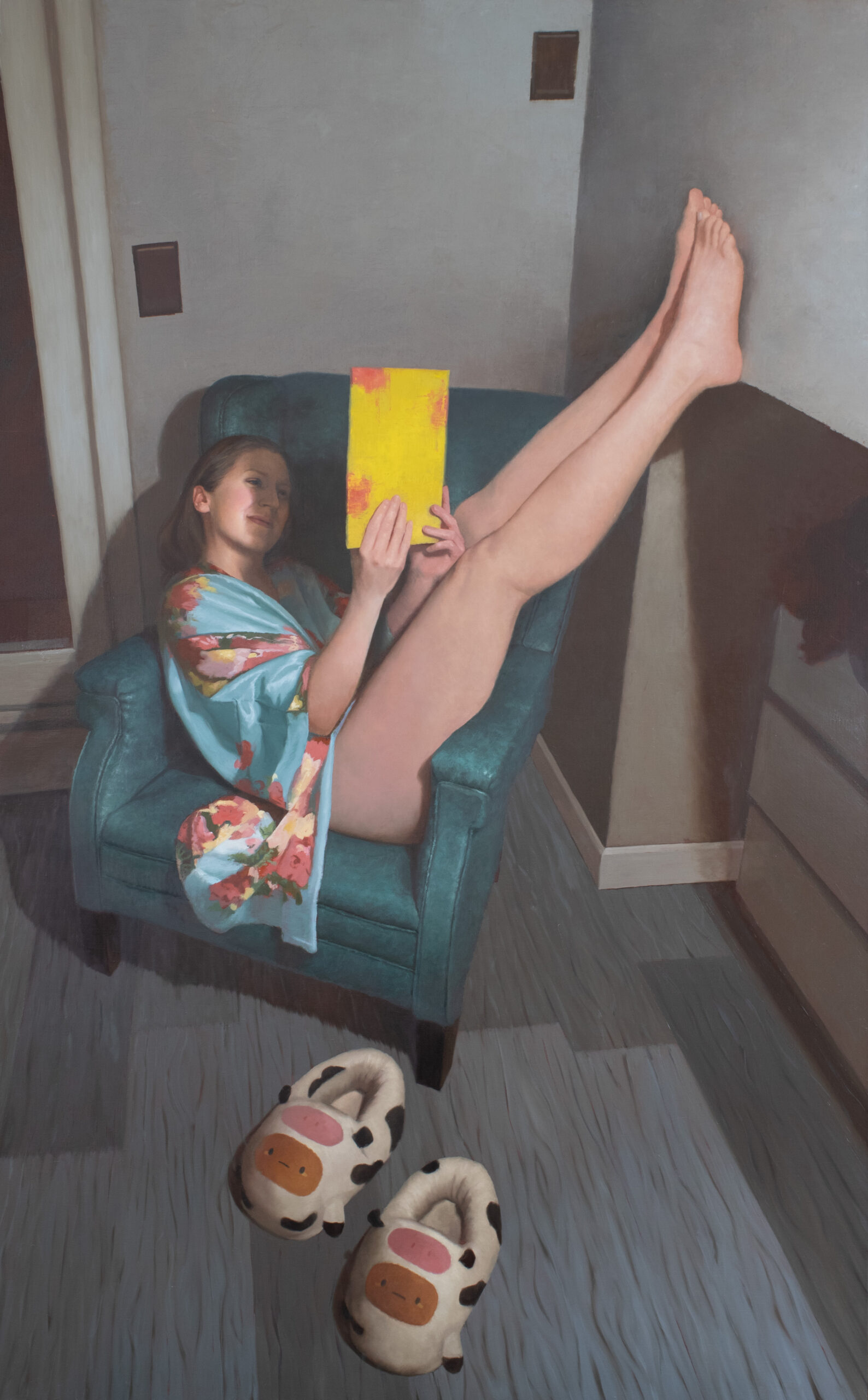 Illusionistic painting creates a tension between the flat surface and the sense of depth, relying on a carefully crafted perception that can feel both stable and fragile. My work explores this tension by combining illusionistic techniques with richly layered surfaces to animate spaces, people and objects. I aim to paint enigmas with clarity, offering enough visual and conceptual cues to engage viewers while maintaining a sense of ambiguity.